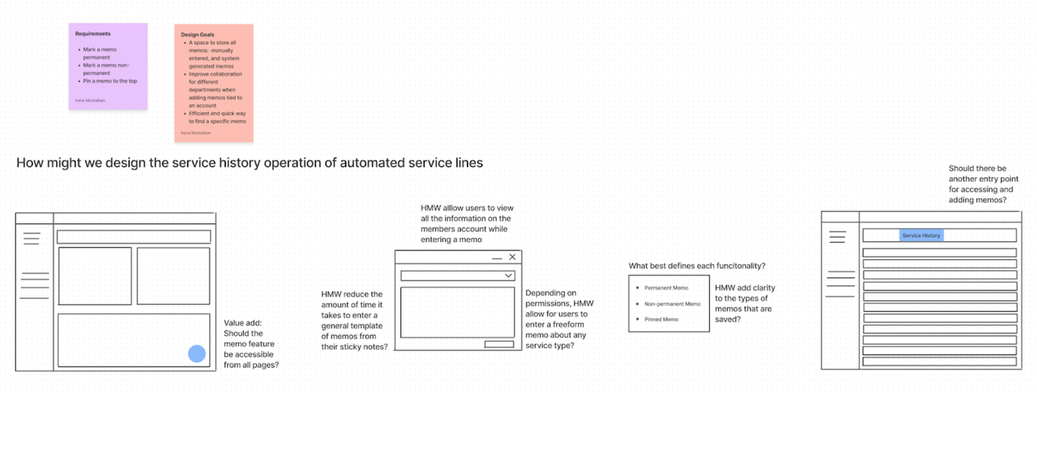 Exploring new and clear ways to store all service history memos while reducing friction when helping members with their service requests.